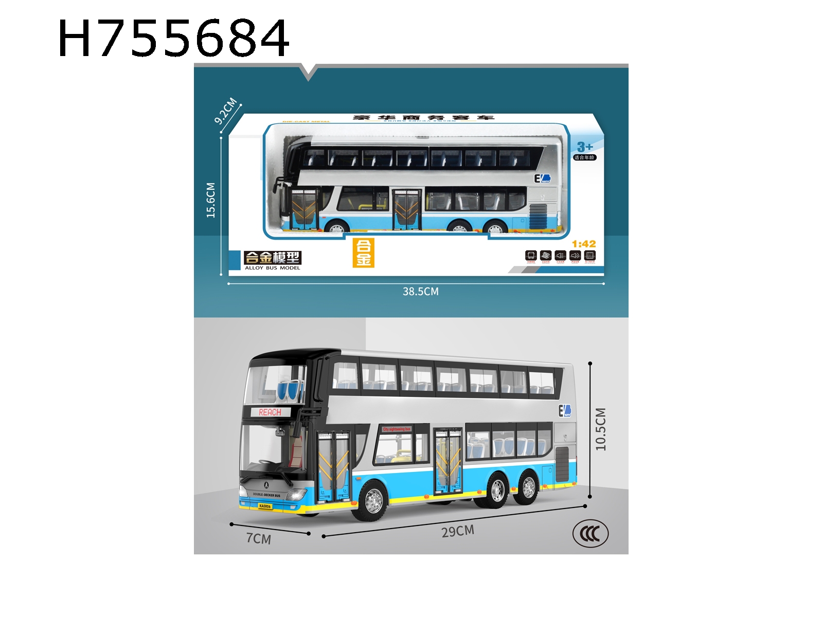 1:42 Alloy Model Double Decker Bus (Silver)