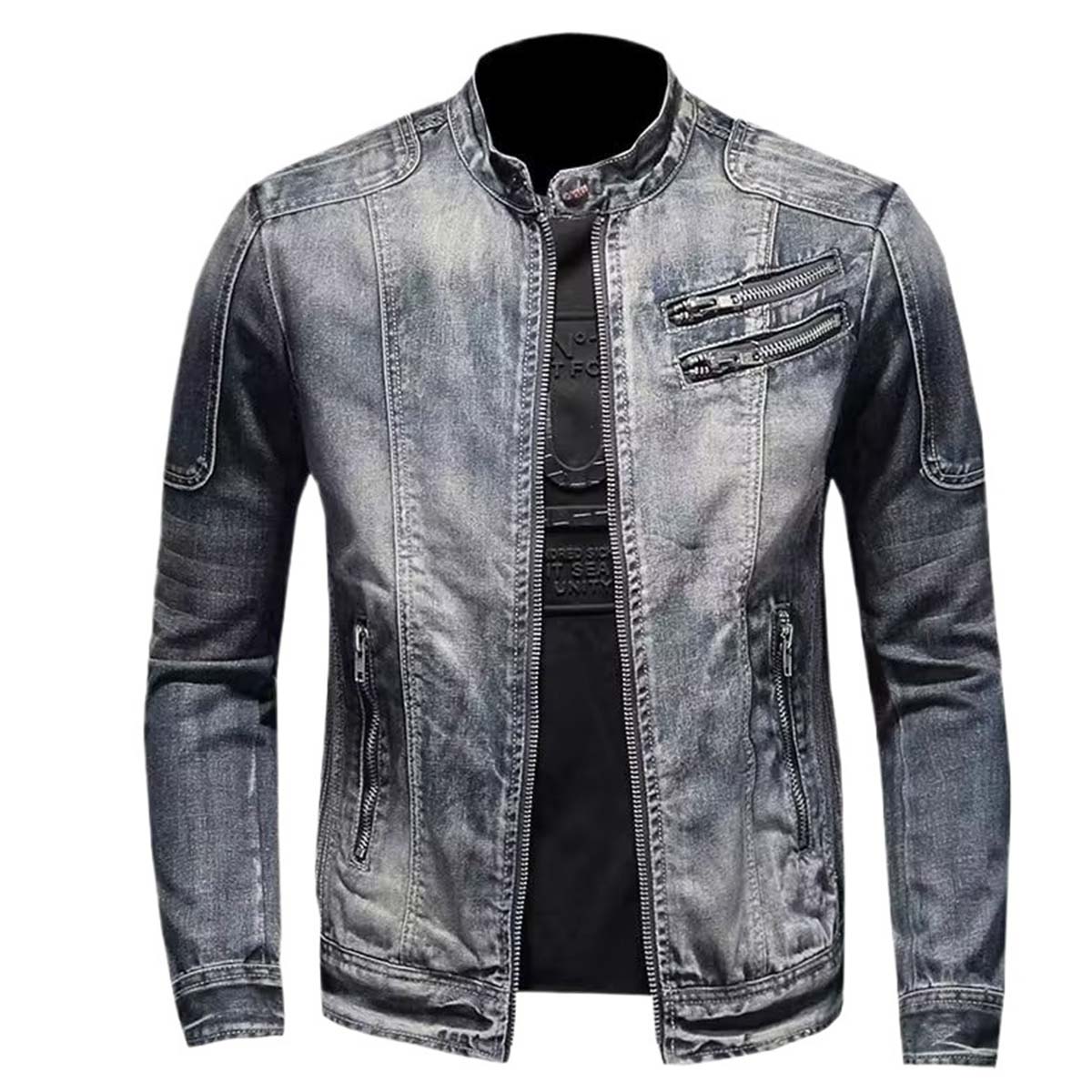 Fashion men's denim jacket European and American casual retro large size stand collar zipper jacket cycling motorcycle clothing