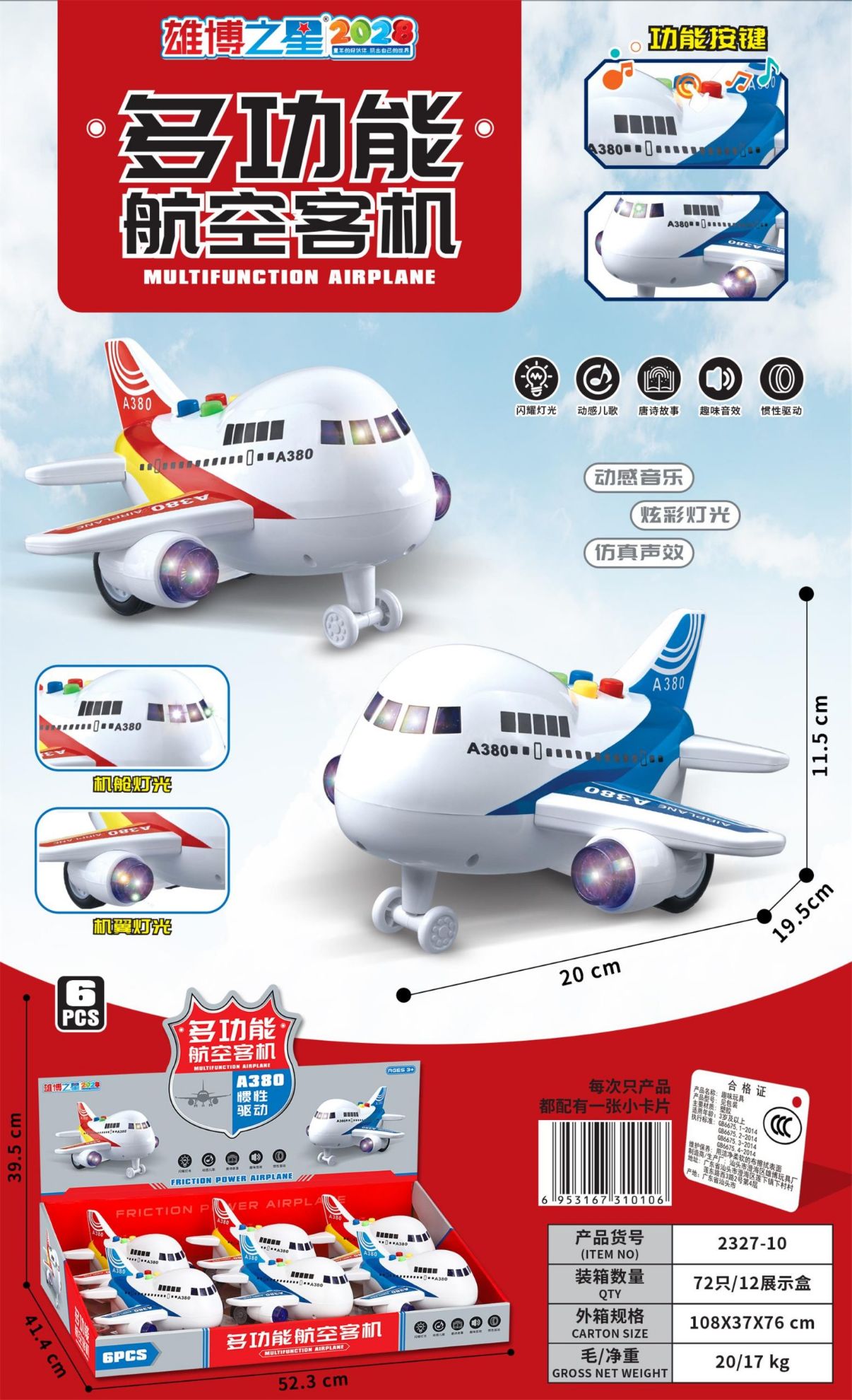 Multi-functional Electric Toy Airplane for Aeroplane Passenger Plane