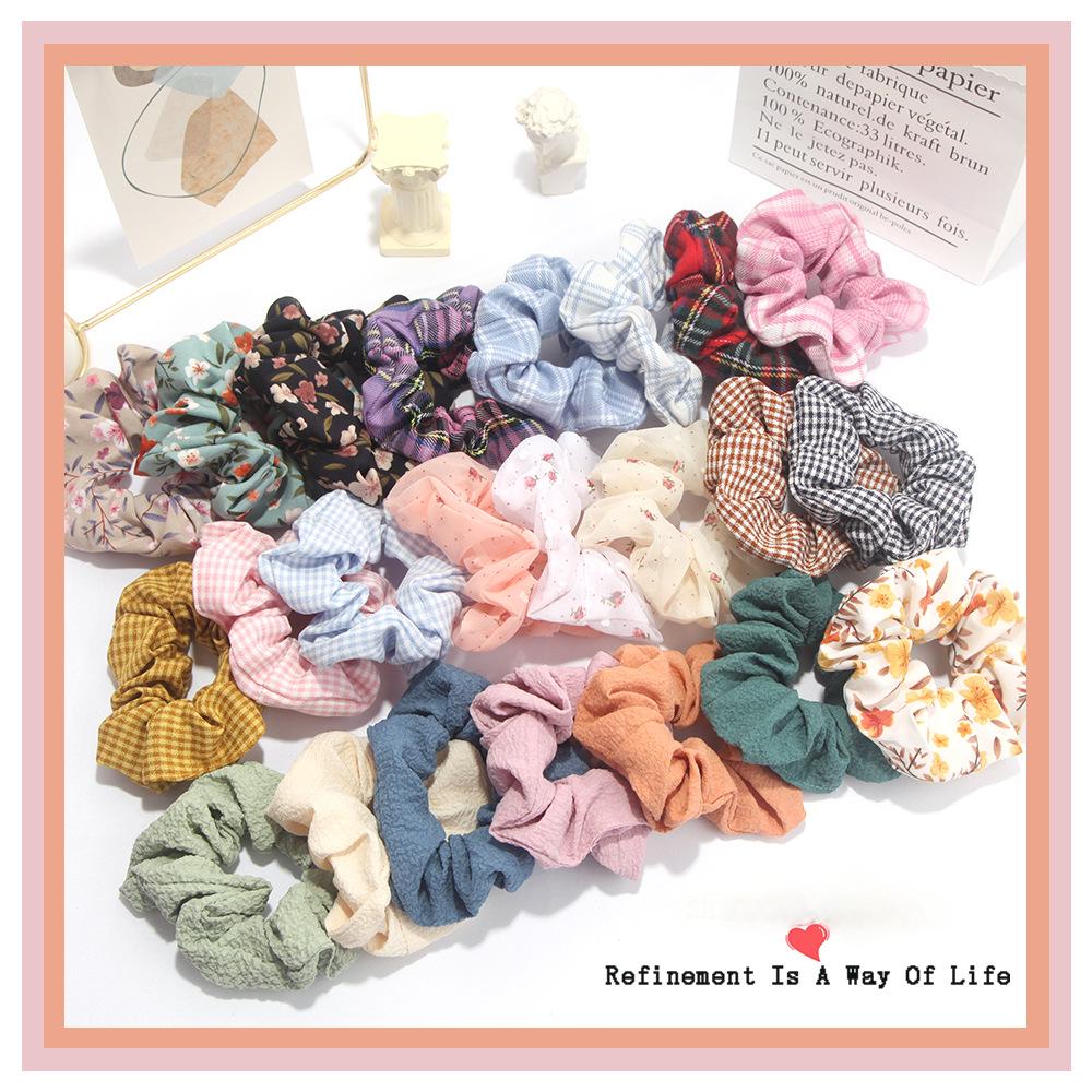 New JK plaid large intestine ring hair ring Korean version ins fabric floral headband forest series ponytail satin headdress female