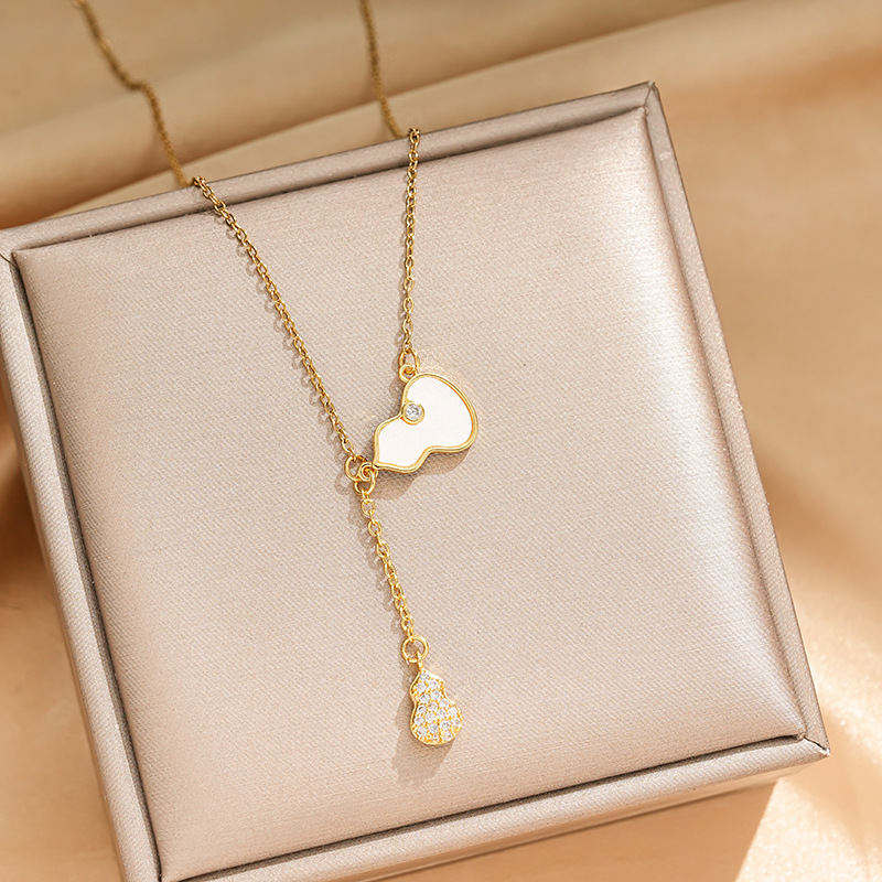 Real gold electroplated tassel gourd series titanium steel necklace for women fashion versatile internet celebrity popular collarbone chain jewelry wholesale