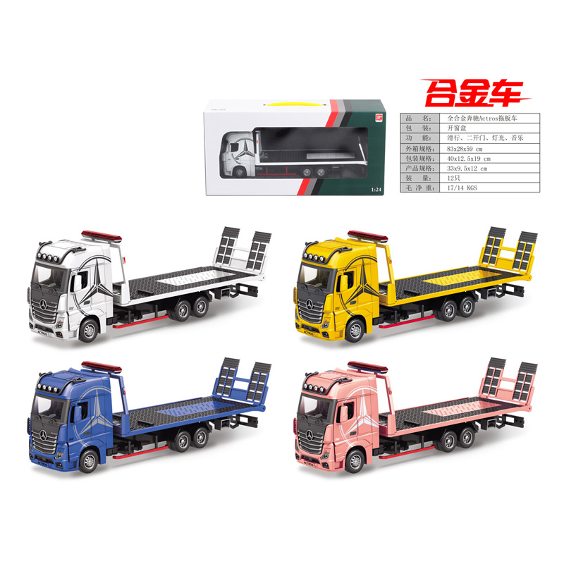 1:24 Scale Alloy Mercedes Actros Flatbed Truck (With Sliding Doors, Lights, and Music)